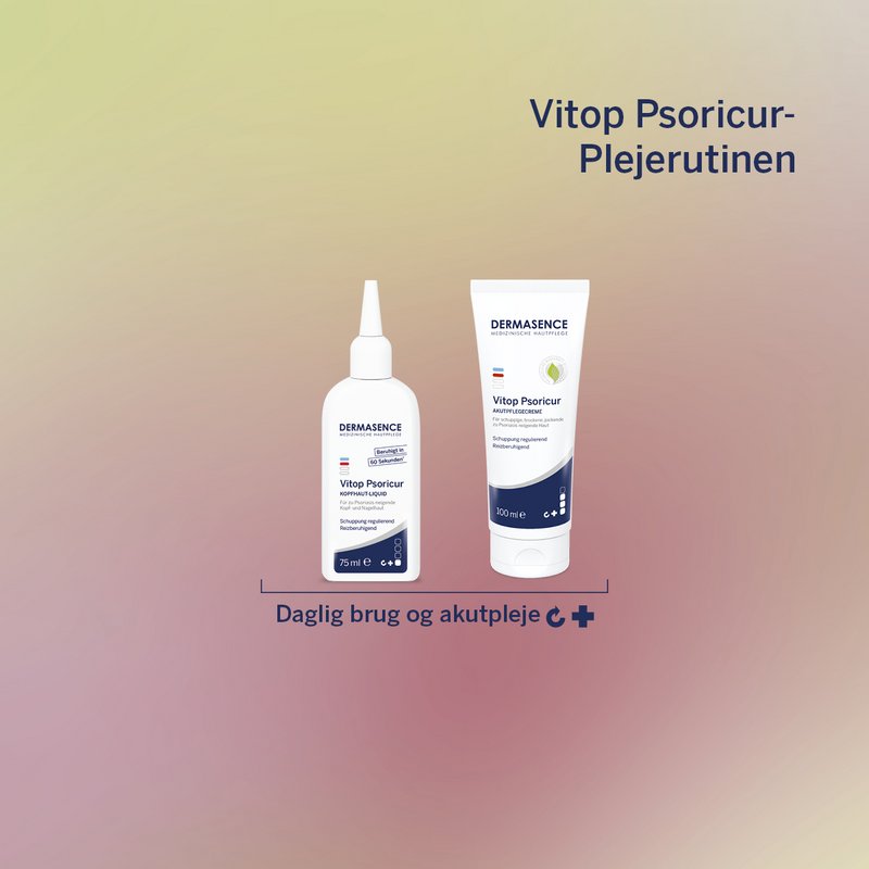 Den akut plejende creme til skællende, tør, kløende og rød hud kan bidrage til at forlænge udbrudsfri perioder ved psoriasis-hudtilstande*. Den normaliserer kraftig forhorning og afskalning, beroliger irriteret hud og kan reducere rødme. Huden fugtes og beskyttes mod yderligere udtørring.