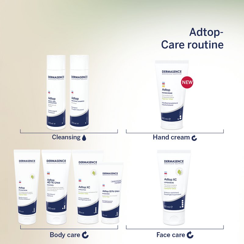 The DERMASENCE Adtop 40 % Urea intensive care loosens the top layer of skin and removes heavy calluses. Reduces cracks, rough skin and flaking associated with psoriasis. Panthenol and glycerine increase skin moisture. The light, non-greasy texture is also suitable for use on heavily callused areas and thickened nails. A significant improvement in skin condition is noticeable after 14 days of regular use.